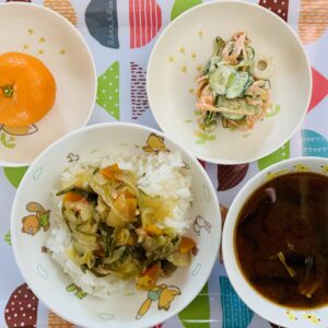 安全で安心できる食材を使用し、旬の食材や季節を感じられる献立づくりに努め、おいしい食事・おやつを提供します。食物アレルギーの子どもにも対応しています。 -