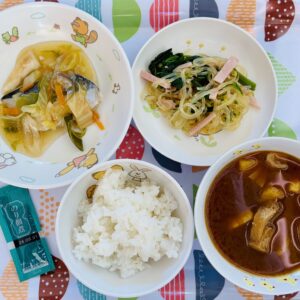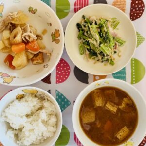 安全で安心できる食材を使用し、旬の食材や季節を感じられる献立づくりに努め、おいしい食事・おやつを提供します。食物アレルギーの子どもにも対応しています。 -