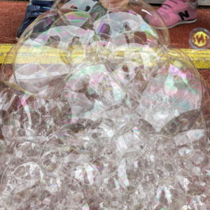 きれいなしゃぼん玉を見て大喜び!
