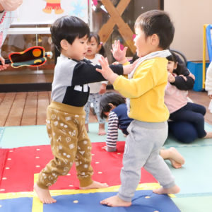 「はっけよ~い!のこった!」の合図で押し合いっこ!!